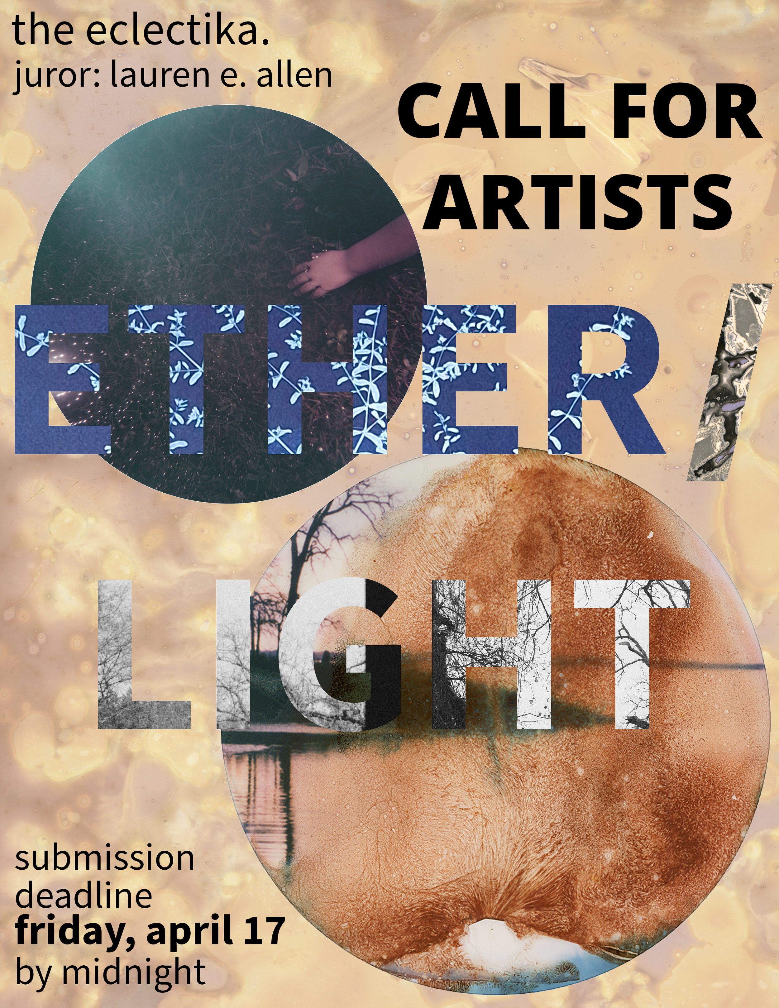 The Eclectika is excited to announce our upcoming open call 'Ether / Light', a photography exhibition dedicated to historical, alternative and traditional photographic processes and their exploration of light, time and materiality. The juror for this exhibition is artist, educator, and Assistant Gallery Director for The Eclectika, Lauren E. Allen. 'Ether / Light' is open to all artists over the age of 18 and reside in North Texas. Artists are welcome to submit up to 5 works in any historical, traditional or alternative photographic medium. Digitally printed images are welcome if the creation was founded within a material process. Submission fee for the show is $10, payable through our website. Deadline to submit is Friday, April 17 at midnight. Full details below.